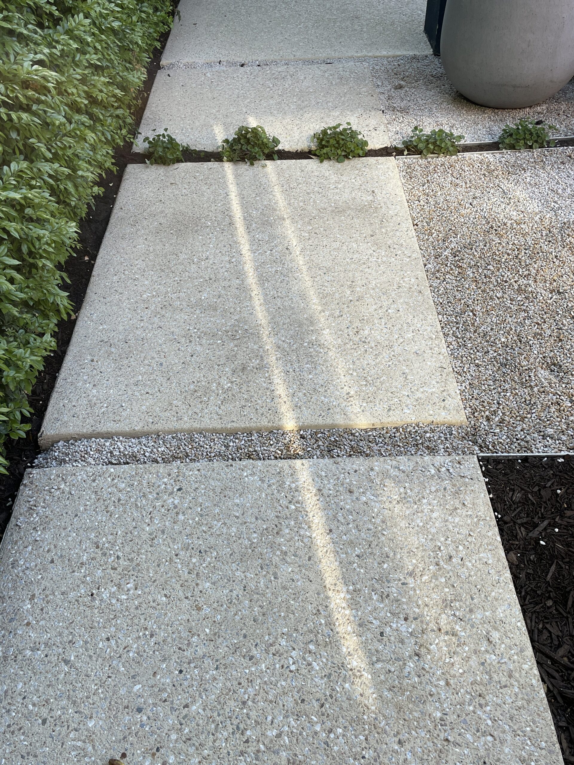 We introduced new heights in the garden to create visual interest and included different textures for hardscaping. Exposed aggregate was used in the outdoor dining area, gravel replaced lawn and stone style large format paving for the raised lounge area.
