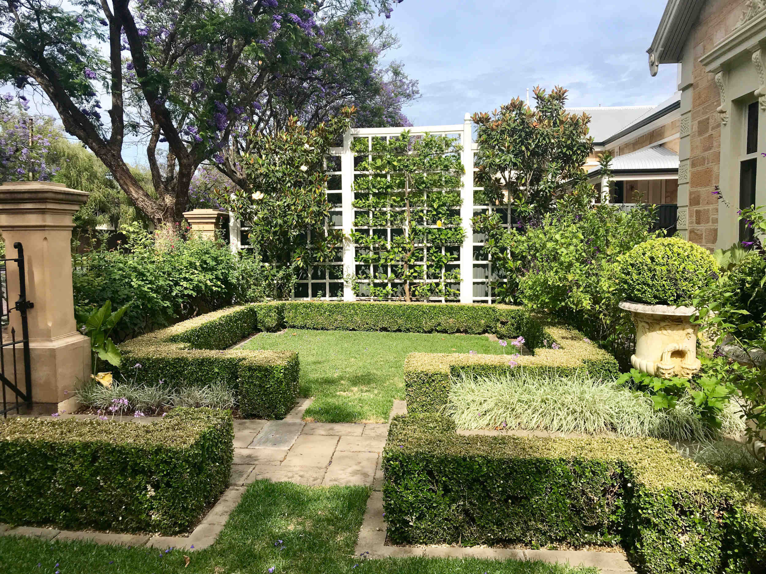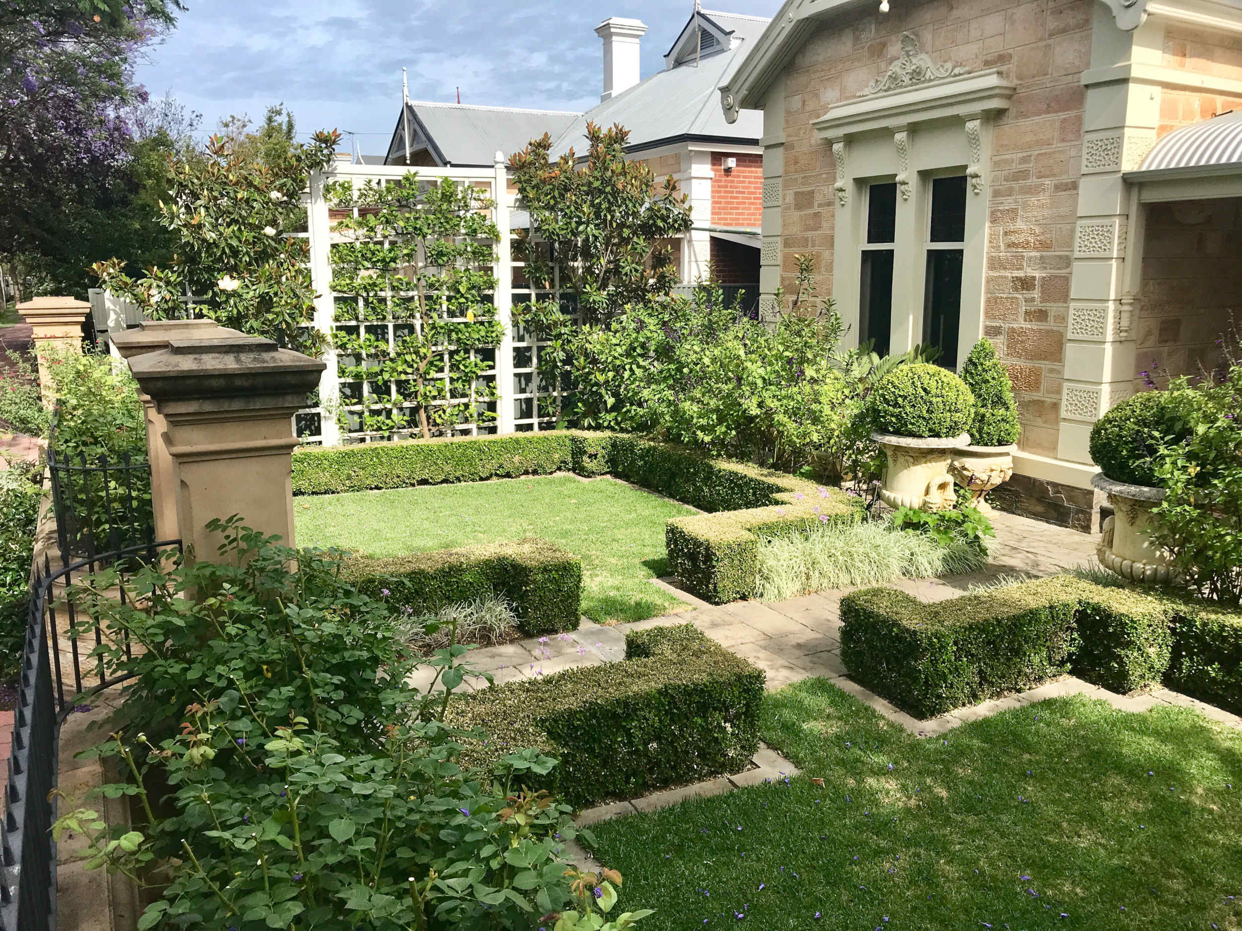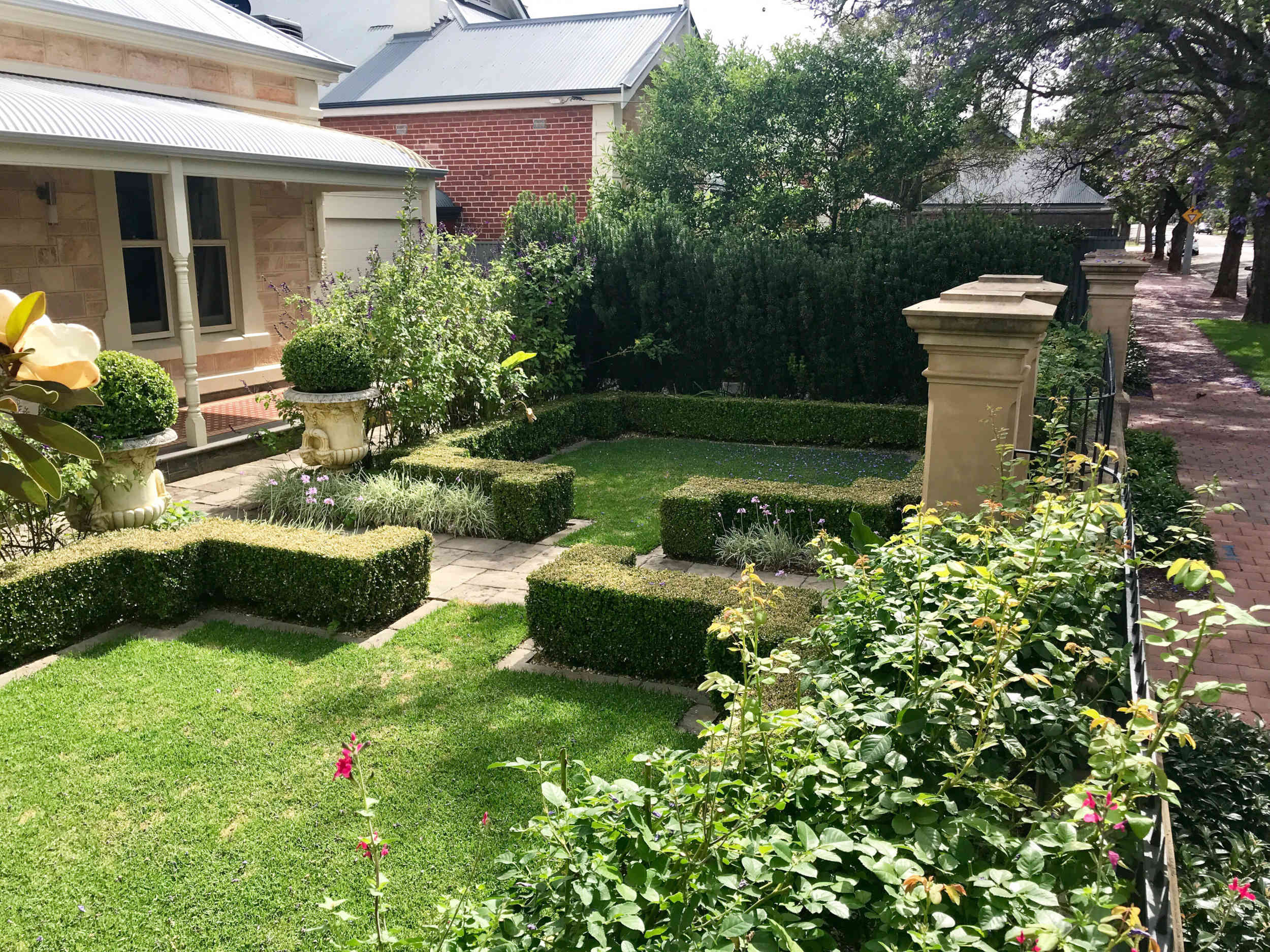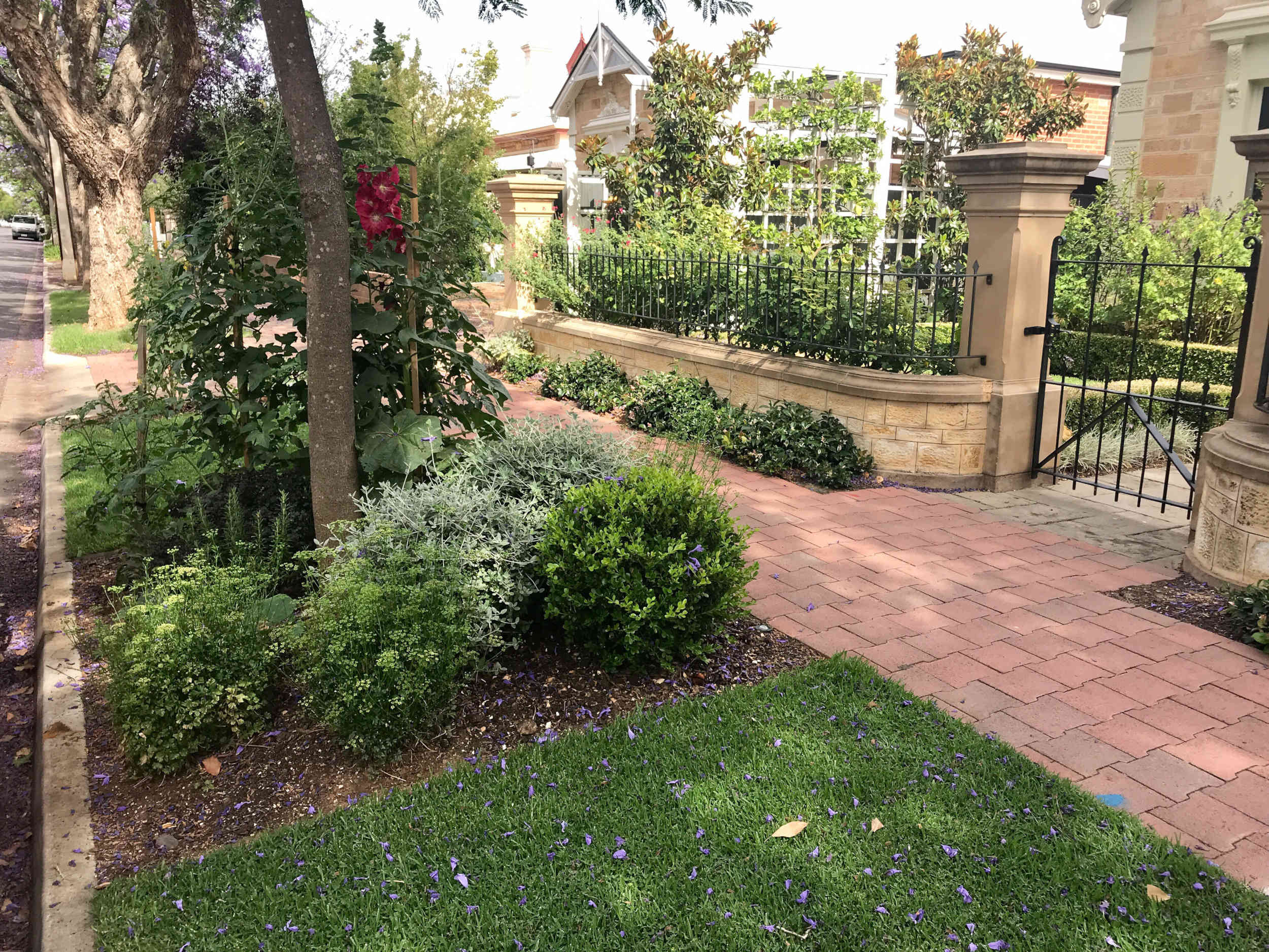 A new garden for an old beauty. The south facing front garden was designed to separate the driveway from the entrance garden. This new garden has form and shape and slows the visitor to view and “look around” before announcing their entrance. Very simple in design and planting scheme but cleverly creates interest to invite visitors to wander through.